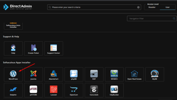 Đầu tiên bạn cần đăng nhập vào DirectAdmin và tìm đến mục Softaculous Apps Installer và chọn WordPress