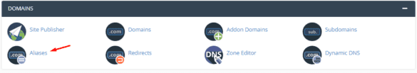 Tiếp theo bạn cần đăng nhập vào cPanel để thực hiện cấu hình Aliases. Bạn tìm đến mục Domain và chọn Aliases.