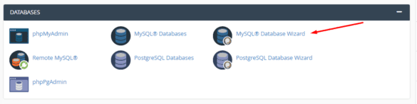 Đầu tiên bạn cần đăng nhập vào cPanel và cuộn xuống chọn MySQL® Database Wizard