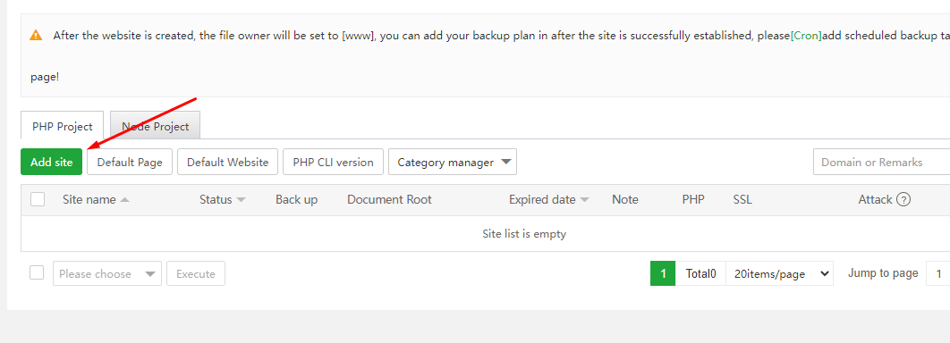 Sau khi bạn đã cài đặt aaPanel bạn có thể thêm website vào để sử dụng.