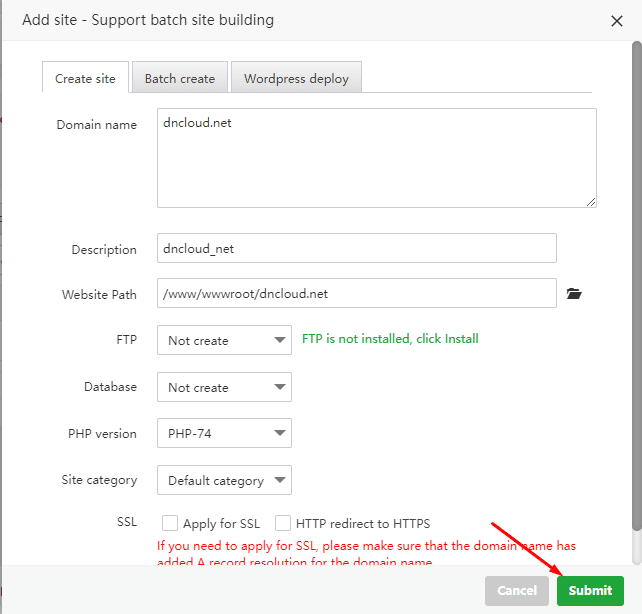 - PHP Version: Phiên bản PHP dành cho website, bạn có thể cài thêm phiên bản PHP tại mục App Store trong aaPanel.