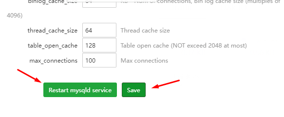 Sau khi chọn xong bạn ấn nút SaveRestart mysqld service.